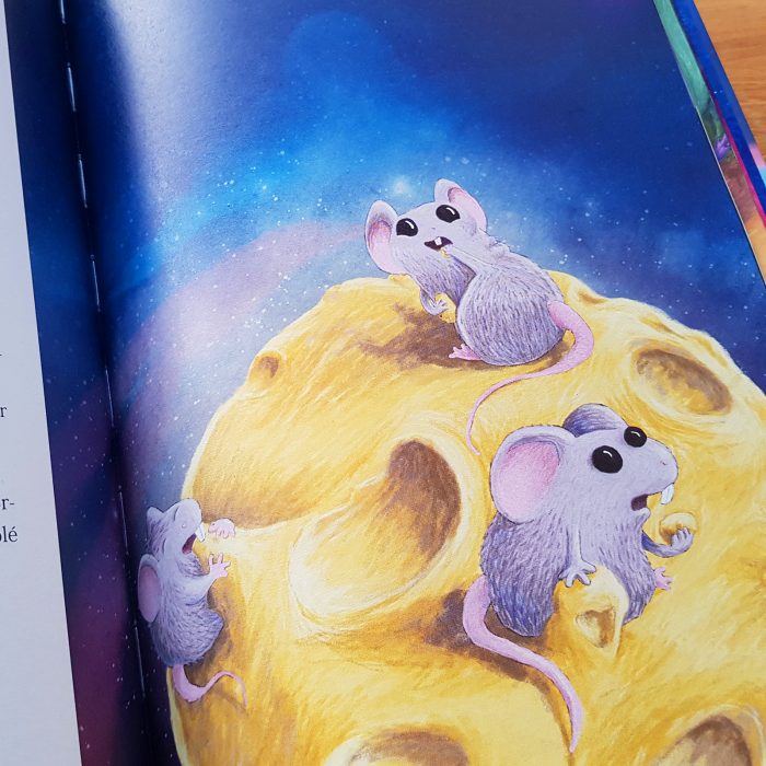 Mais lors de sa conception, nous avons découvert que les futurs adultes l’adoraient également. Soit comme histoire du soir lue par un parent, soit comme un premier livre « de grand » à lire soi-même. L’importance des images et le découpage en scènes permettent aux enfants de se situer facilement dans la narration.